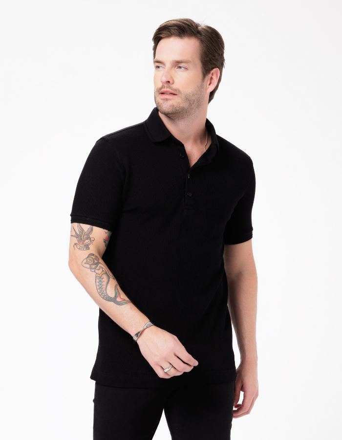 POLO MANGA CURTA TEXTURIZADA